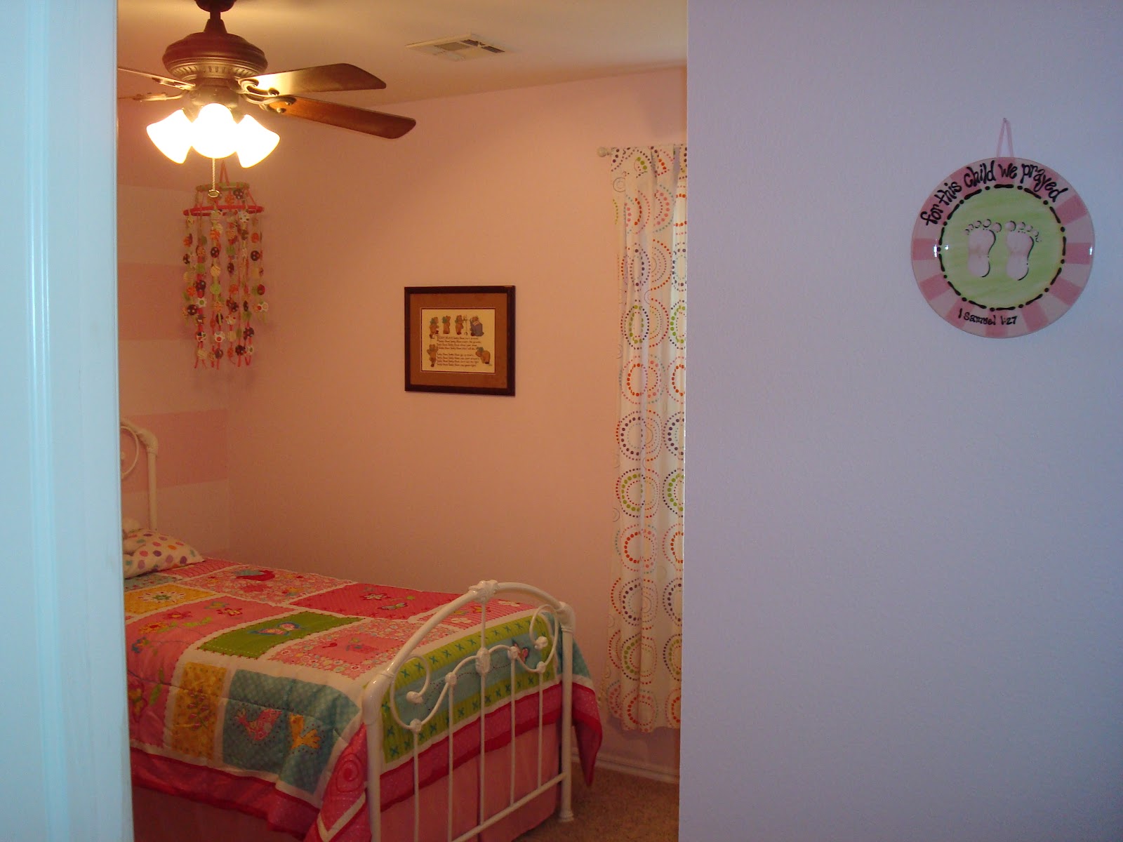This is her room as you walk into the door. I love the plate that Russ' Mom gave me after she was born. That verse is one of my favorites.